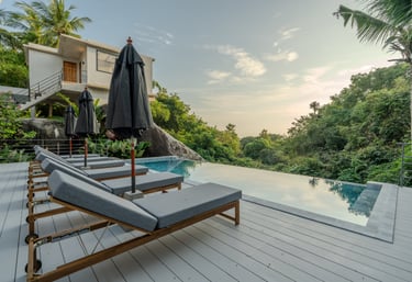 Experience unmatched privacy and panoramic ocean views at Palm Stone Villa — a secluded sanctuary designed for couples, families, and friends seeking a luxury retreat in Thailand, away from the crowds.