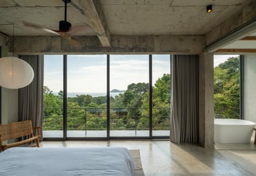 Tucked away on a lush hillside overlooking the Gulf of Thailand, Palm Stone Villa offers an exclusive getaway in the heart of Koh Phangan. With modern architecture, spacious interiors, and the serenity of nature, this four-bedroom villa is the perfect blend of privacy and luxury.