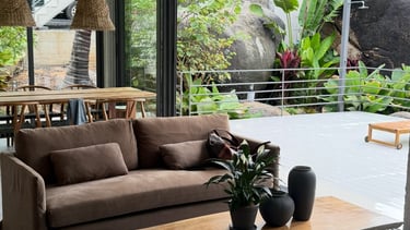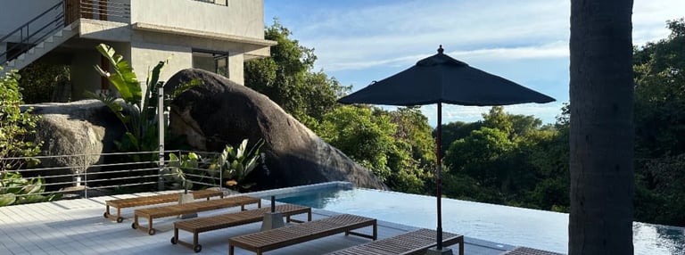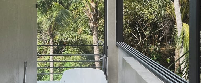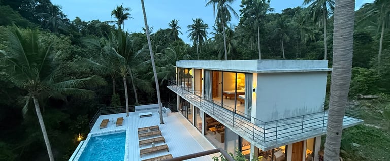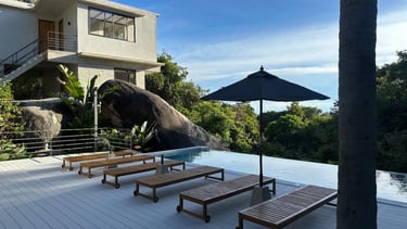 State-of-the-art air conditioning and ceiling fans ensure comfort in every room, and high-speed, secure Wi-Fi keeps you connected across the entire property — from bedrooms to poolside. Outdoor dining spaces invite long, leisurely meals under the open sky. And a private spa suite - the only villa in Koh Phangan with a dedicated spa suite - for the famous healing hands of Thai massage therapists.