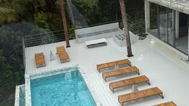 Enjoy a refreshing swim in the stunning infinity-edge pool, seamlessly blending with the lush jungle hillside, completely secluded from prying eyes.
